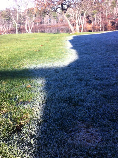 But the sun creeps across the lawn, easing away the time to restore the greenery, beckoning to be played upon even just once more. The car warms, an oasis of heat with steaming hood.